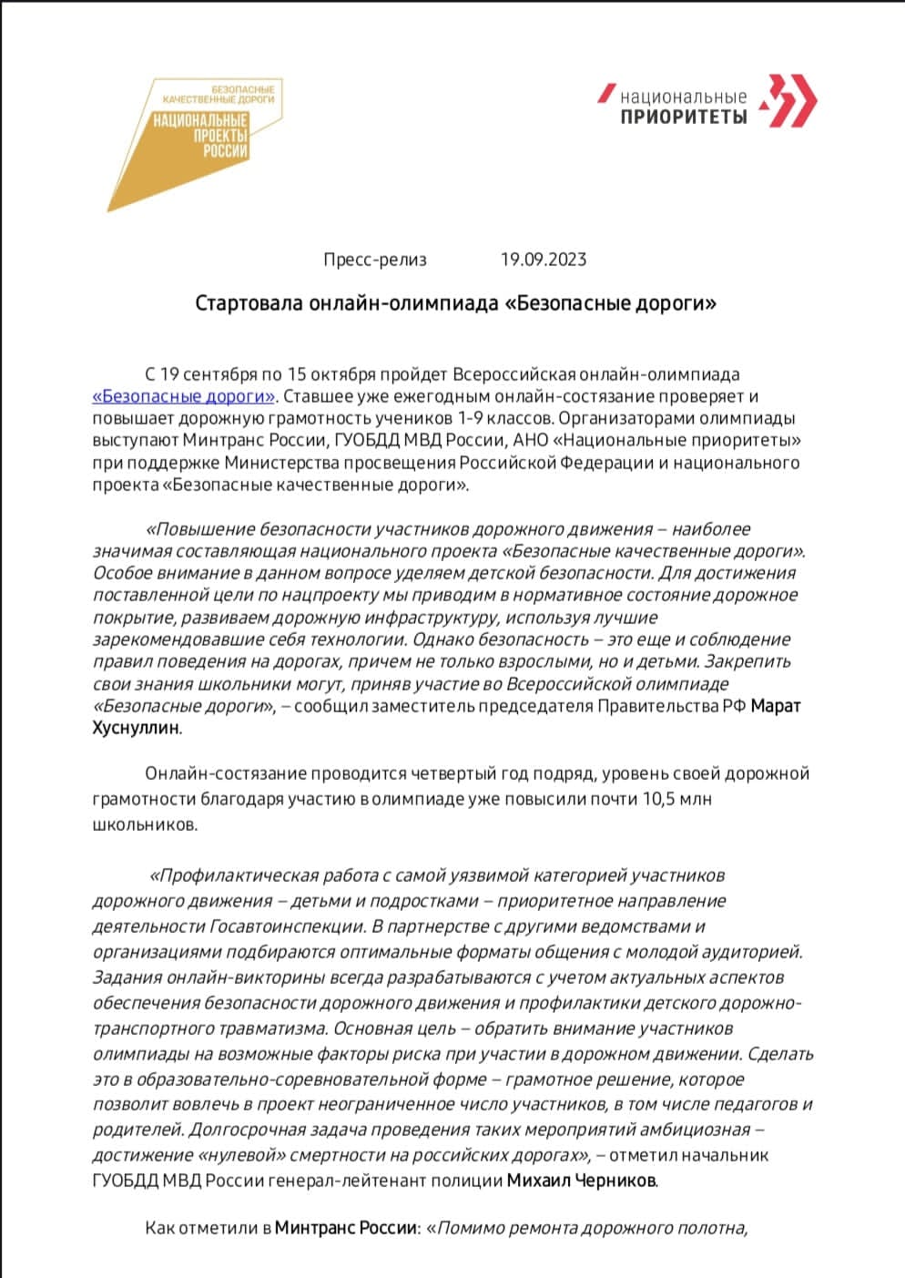 Стартовала онлайн-олимпиада "Безопасные дороги"