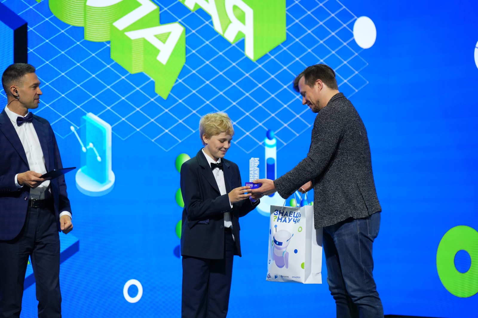 17.05.2024В павильоне «Атом» на ВДНХ состоялась торжественная церемония награждения 20 победителейтретьего сезона Всероссийского конкурса детского научно-популярного видео «Знаешь?Научи!».Участников мероприятия поприветствовал заместитель Председателя Правительства Дмитрий Чернышенко.