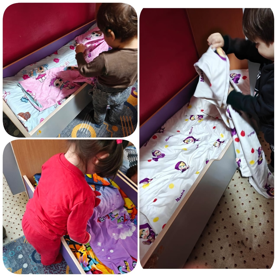 Воспитатель: Атаева Разет ШарпудиевнаМладшая группаТрудовая деятельность: помогаем няня застелить постель